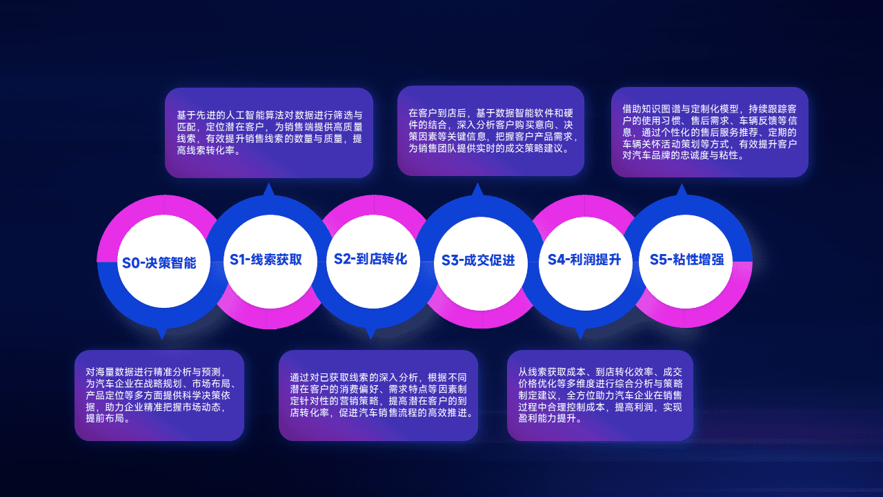 通过拓宽潜在客户来源、、、、优化线索分配并提高到店转化率,,,以增强销售效率。。。同时,,,利用线索数据不断优化分析模型,,有效提升转化率,,扩大营销影响力。。。。